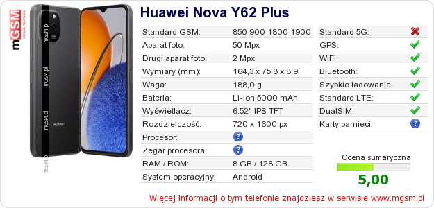 Dane telefonu Huawei Nova Y62 Plus na Twojej stronie