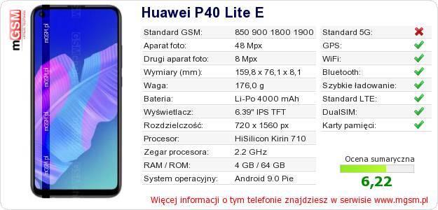 Dane telefonu Huawei P40 Lite E na Twojej stronie