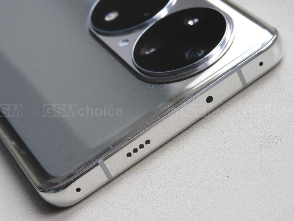 Na prawej krawędzi mieszczą się przyciski głośności i włącznik. Ten ostatni z ozdobną czerwoną kreską wzdłuż. Na górnej krawędzi oprócz oczka diody podczerwieni i jednego z głośników widać jeszcze dwa symetrycznie rozmieszczone otwory. Sytuują się blisko rogów i nie mam pojęcia do czego służą. Dół - to drugi głośnik kompletujący stereo, gniazdo USB-C i szufladka na dwie karty nano-SIM. Huawei P50 Pro obsługuje karty pamięci w standardzie NanoMemory, a zatem jeden ze slotów na kartę SIM można obsadzić kartą NM.