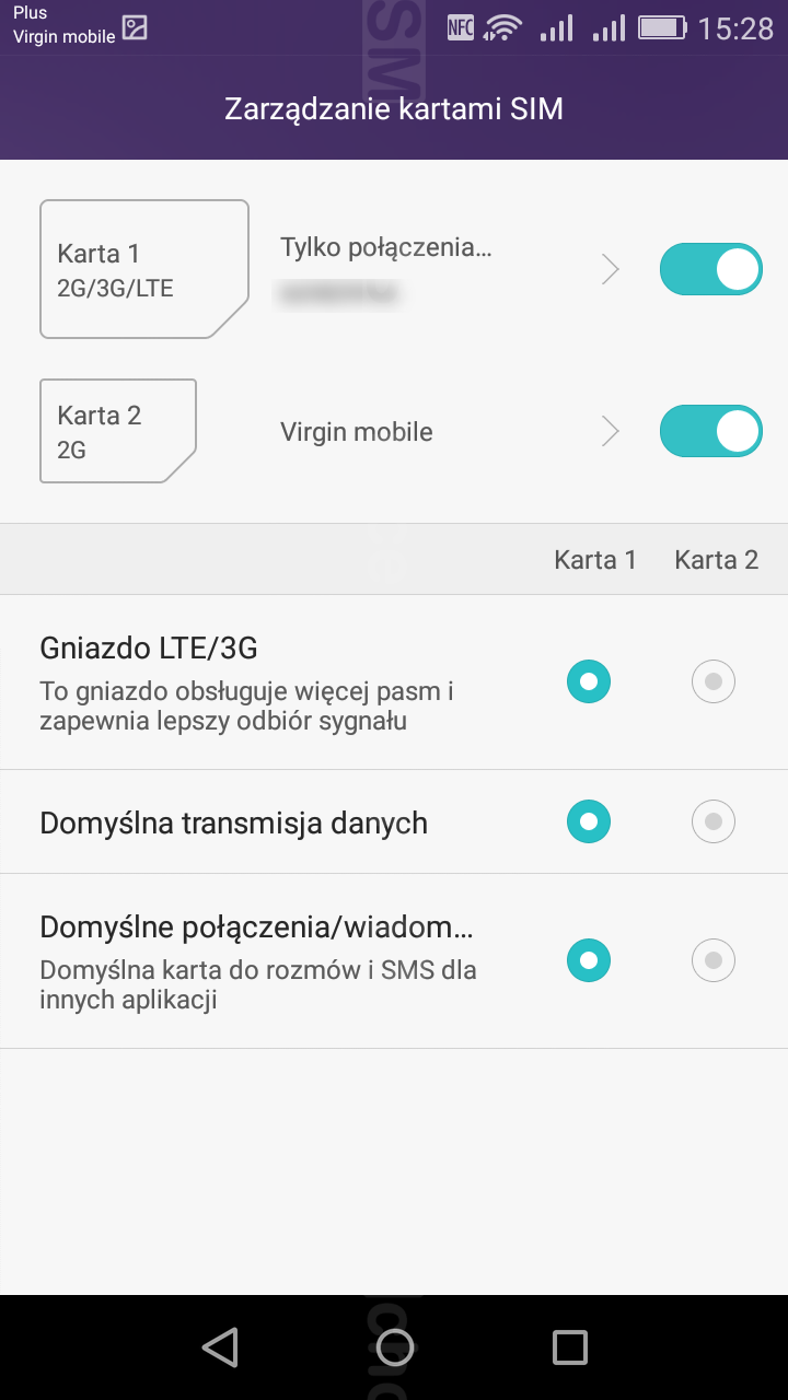 Zaletą urządzenia jest obsługa dwóch kart SIM, ale kosztem zrezygnowania z dodatkowej przestrzeni na pliki na karcie microSD (slot hybrydowy). Mamy tu do czynienia z dual-SIM stand-by, czyli w trakcie korzystania z jednej karty druga jest na ten czas wyłączana. Po zmianie kart należy zrestartować telefon. Slot microSIM obsługuje sieci 3G/4G, nanoSIM ogranicza się do sieci 2G - z kolei z poziomu menu wybierzemy, która z kart będzie obsługiwać połączenia, wiadomości transfer danych. Samą jakość połączeń oceniam bardzo dobrze, słyszałam i byłam słyszana głośno i wyraźnie. Zabrakło tylko możliwości nagrywania połączeń. Do wprowadzania tekstów mamy klawiaturę systemową Google'a oraz klawiaturę Huawei o znacznie wyższej funkcjonalności.
