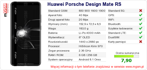 Dane telefonu Huawei Porsche Design Mate RS na Twojej stronie