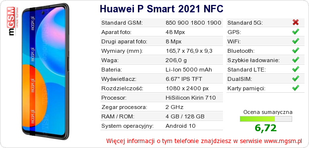 Dane telefonu Huawei P Smart 2021 NFC na Twojej stronie