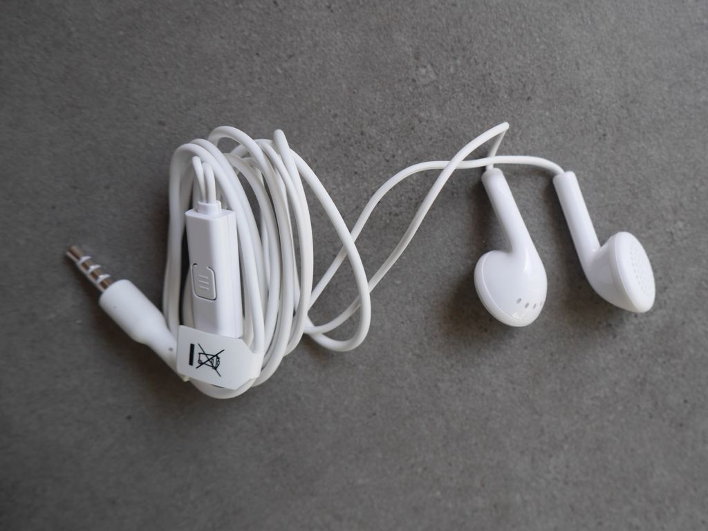 W pudełku razem ze smartfonem znajdziemy trochę makulatury, kabel microUSB-USB, sieciową ładowarkę (2 A) oraz prosty zestaw słuchawkowy, typowe pchełki w białym kolorze. Producent nie dorzucił foli ochronnej na ekran (ale takowa naklejona jest fabrycznie, a to zawsze jakiś plus) i nie dodał niestety silikonowego lub plastikowego pokrowca. Szkoda.