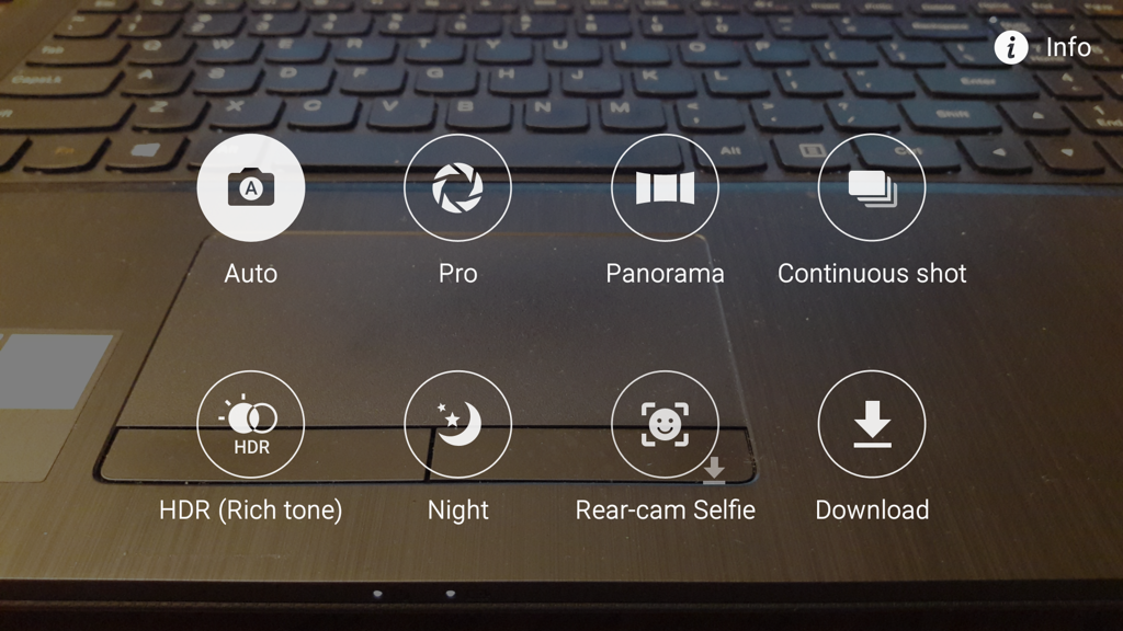 Zdjęcia można robić w maksymalnych rozdzielczościach 10 lub 13 megapikseli (w zależności od proporcji ekranu, a co za tym idzie - liczby pikseli). Jest także opcja pozwalająca na wykrywanie uśmiechu i uruchomienie spustu migawki np. przez powiedzenie angielskiego słowa "cheese".