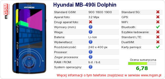 Dane telefonu Hyundai MB-490i Dolphin na Twojej stronie