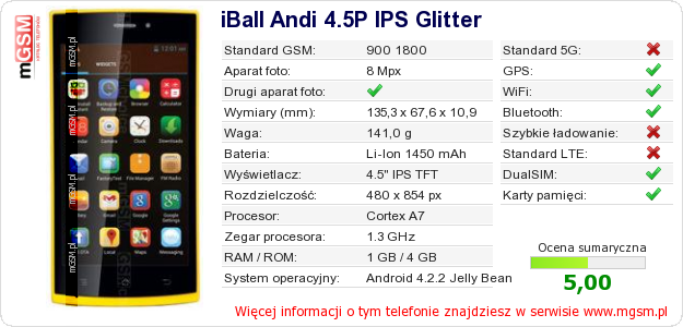 Dane telefonu iBall Andi 4.5P IPS Glitter na Twojej stronie