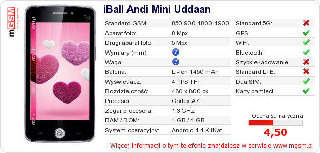 Dane telefonu iBall Andi Mini Uddaan na Twojej stronie