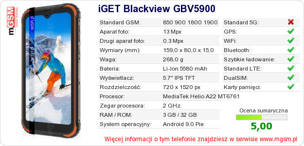 Dane telefonu iGET Blackview GBV5900 na Twojej stronie
