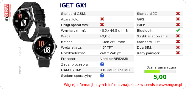 Dane telefonu iGET GX1 na Twojej stronie