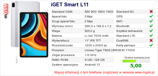 Dane telefonu iGET Smart L11 na Twojej stronie