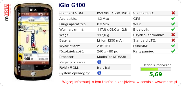 Dane telefonu iGlo G100 na Twojej stronie