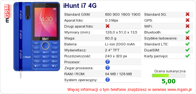 Dane telefonu iHunt i7 4G na Twojej stronie