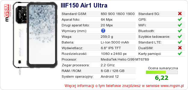 Dane telefonu IIIF150 Air1 Ultra na Twojej stronie