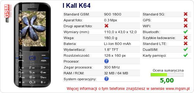 Dane telefonu I Kall K64 na Twojej stronie