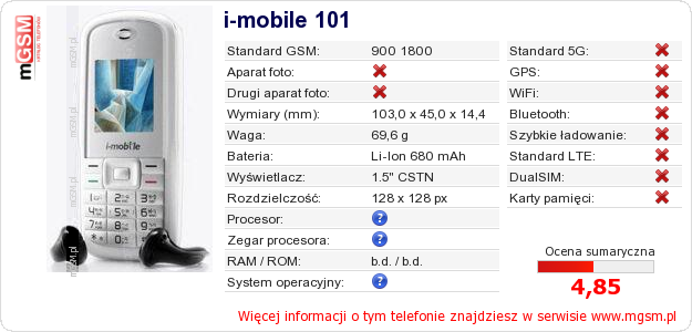 Dane telefonu i-mobile 101 na Twojej stronie