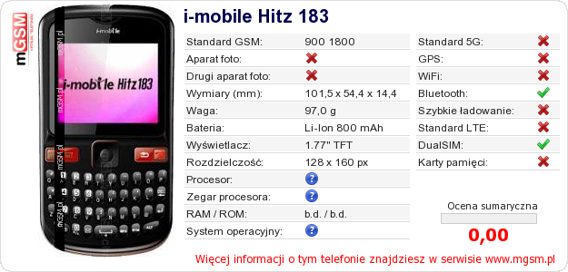 Dane telefonu i-mobile Hitz 183 na Twojej stronie