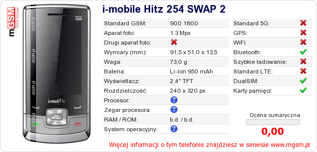 Dane telefonu i-mobile Hitz 254 SWAP 2 na Twojej stronie