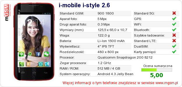 Dane telefonu i-mobile i-style 2.6 na Twojej stronie