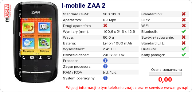 Dane telefonu i-mobile ZAA 2 na Twojej stronie