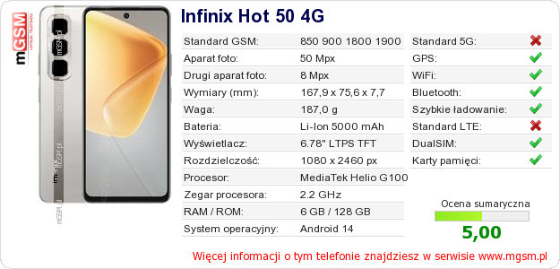 Dane telefonu Infinix Hot 50 4G na Twojej stronie