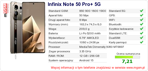 Dane telefonu Infinix Note 50 Pro+ 5G na Twojej stronie