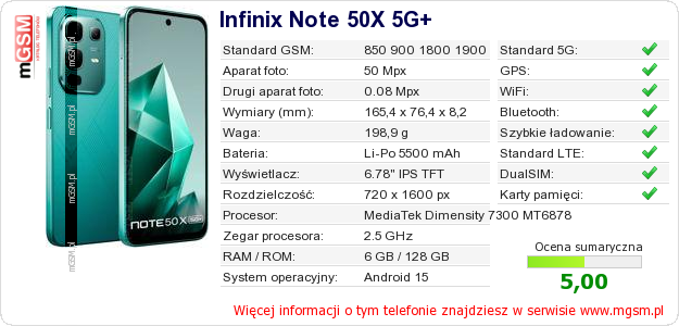 Dane telefonu Infinix Note 50X 5G+ na Twojej stronie