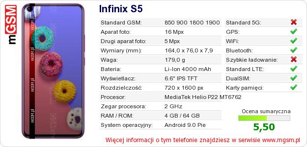 Dane telefonu Infinix S5 na Twojej stronie