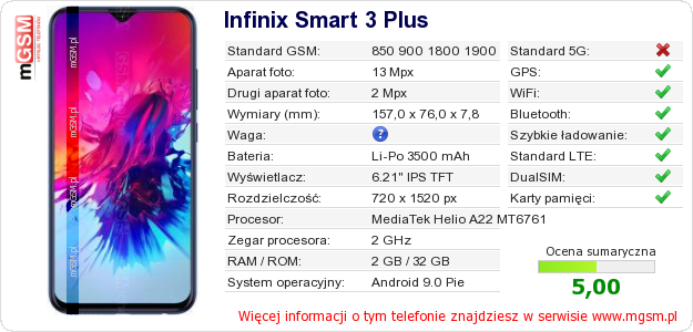 Dane telefonu Infinix Smart 3 Plus na Twojej stronie