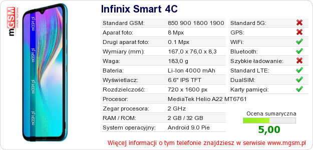 Dane telefonu Infinix Smart 4C na Twojej stronie