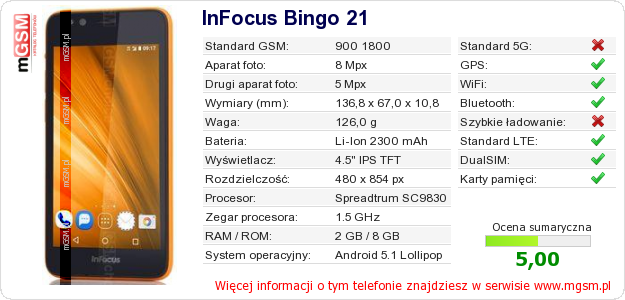 Dane telefonu InFocus Bingo 21 na Twojej stronie