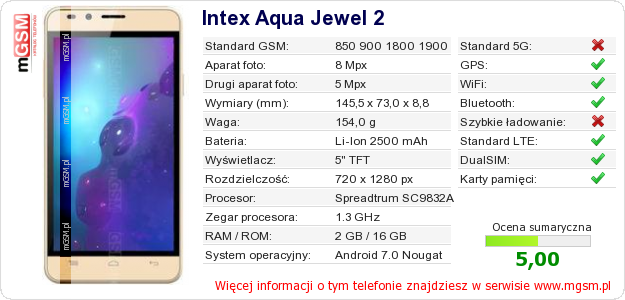 Dane telefonu Intex Aqua Jewel 2 na Twojej stronie