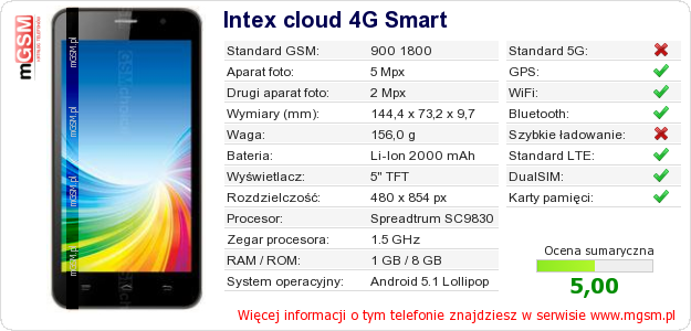 Dane telefonu Intex cloud 4G Smart na Twojej stronie
