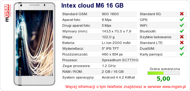 Dane telefonu Intex cloud M6 16 GB na Twojej stronie