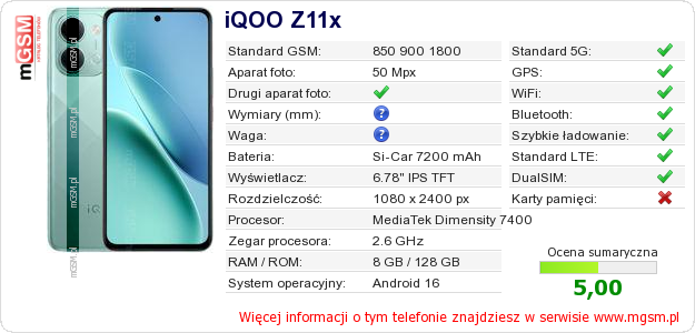 Dane telefonu iQOO Z11x na Twojej stronie