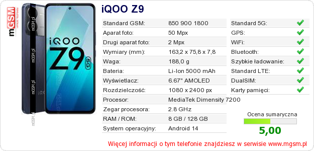 Dane telefonu iQOO Z9 na Twojej stronie
