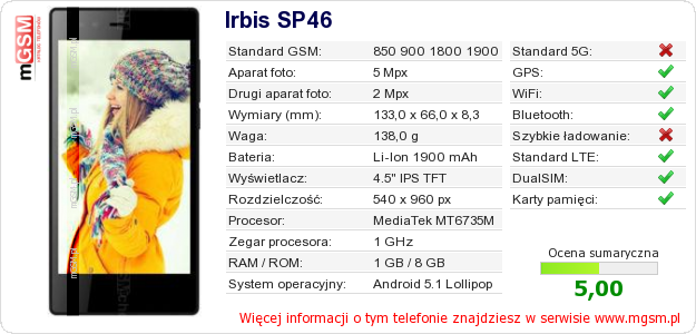 Dane telefonu Irbis SP46 na Twojej stronie