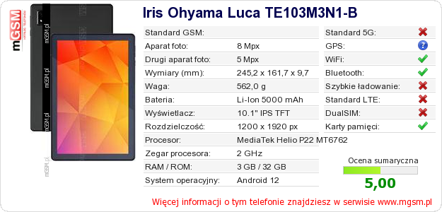 Dane telefonu Iris Ohyama Luca TE103M3N1-B na Twojej stronie