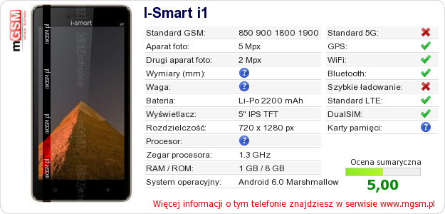 Dane telefonu I-Smart i1 na Twojej stronie