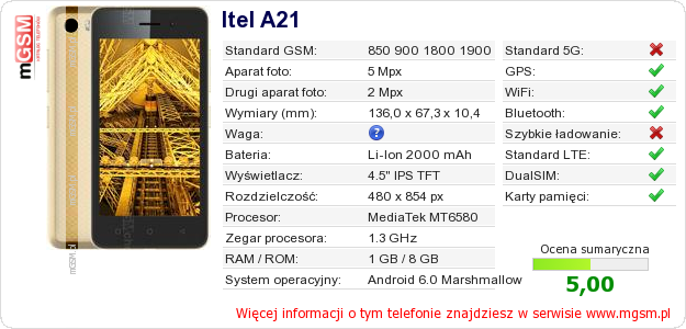 Dane telefonu Itel A21 na Twojej stronie
