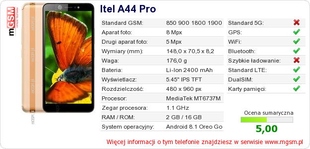 Dane telefonu Itel A44 Pro na Twojej stronie