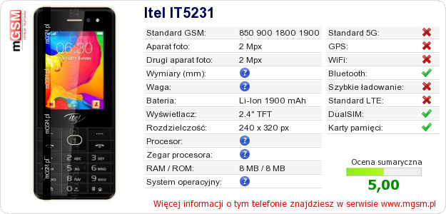 Dane telefonu Itel IT5231 na Twojej stronie
