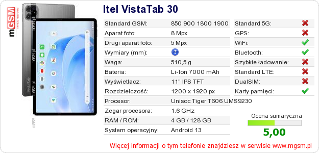 Dane telefonu Itel VistaTab 30 na Twojej stronie