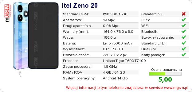 Dane telefonu Itel Zeno 20 na Twojej stronie