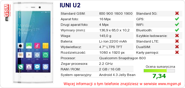 Dane telefonu IUNI U2 na Twojej stronie