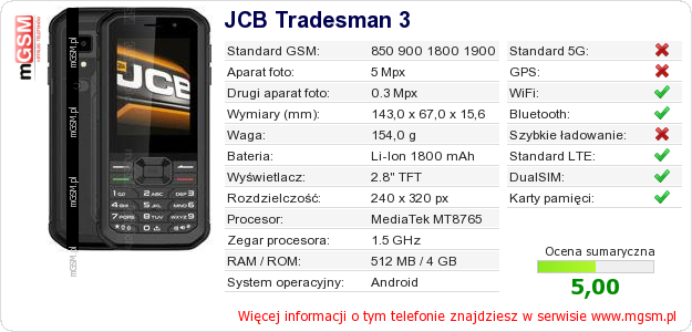 Dane telefonu JCB Tradesman 3 na Twojej stronie
