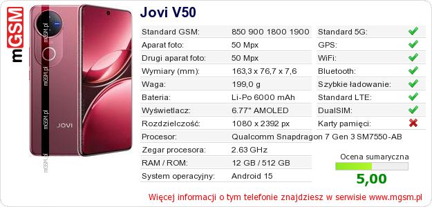 Dane telefonu Jovi V50 na Twojej stronie