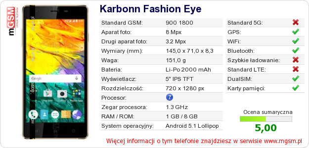 Dane telefonu Karbonn Fashion Eye na Twojej stronie