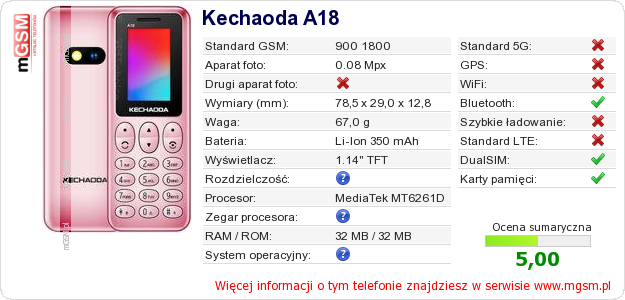 Dane telefonu Kechaoda A18 na Twojej stronie