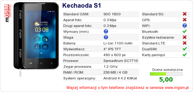 Dane telefonu Kechaoda S1 na Twojej stronie