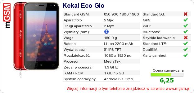 Dane telefonu Kekai Eco Gio na Twojej stronie
